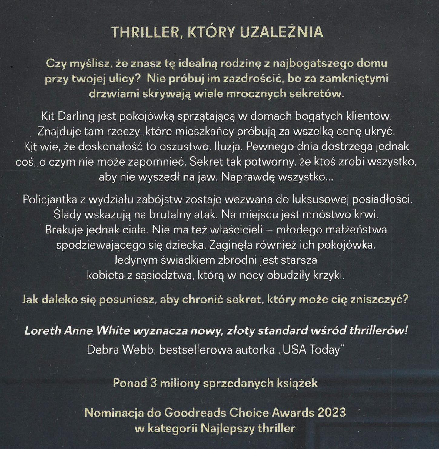 Ludzie bogaci, Osoby zaginione, Policjanci, Przestępstwo, Sprzątaczki i sprzątacze, Tajemnica, Vancouver (Kanada ; wyspa), Powieść, Thriller, 2001-