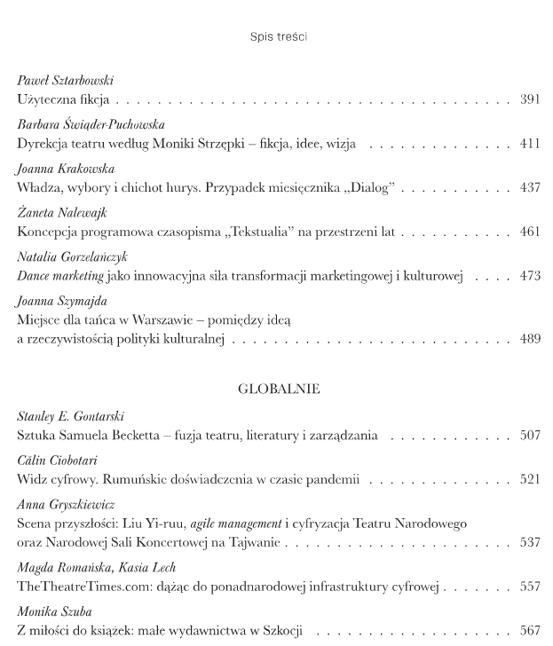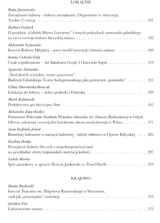 Publikacja zawiera tekst Doroty Buchwald - Instytut Teatralny im. Zbigniewa Raszewskiego w Warszawie, czyli jak "przyrządzić" instytucję.