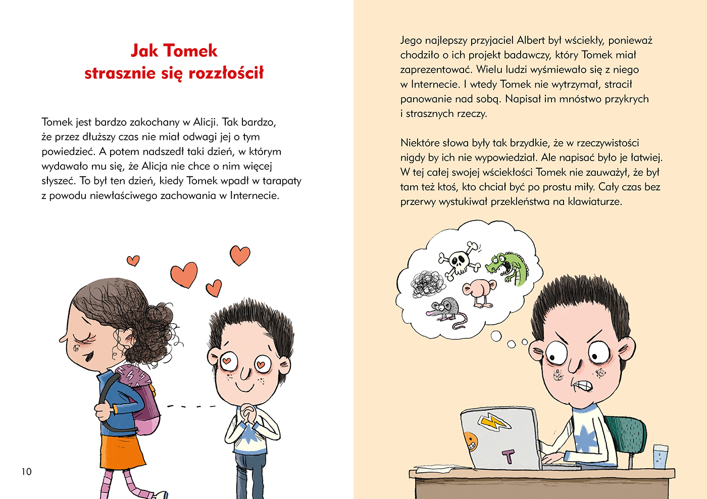 Jak bezpiecznie surfować po sieci? Co mogę pokazywać w Internecie, a czego nie powinienem? Czy mam wierzyć we wszystko, co widzę lub czytam online? Jak radzić sobie z brutalnymi filmami? Co zrobić, gdy ktoś nęka mnie w sieci? Młodzi bohaterowie nie tylko doświadczają tego, co może pójść źle podczas korzystania z Internetu, ale także odkrywają, jak chronić się przed oszustwami i przemocą. Dzięki wielu pomocnym wskazówkom i przykładom, książka ta może być idealnym początkiem rozmowy o bezpiecznym korzystaniu z sieci, a także praktycznym poradnikiem dla dzieci i dorosłych. Szczegółowe kolorowe ilustracje uzupełniają wszystkie ważne informacje. [wydawca]