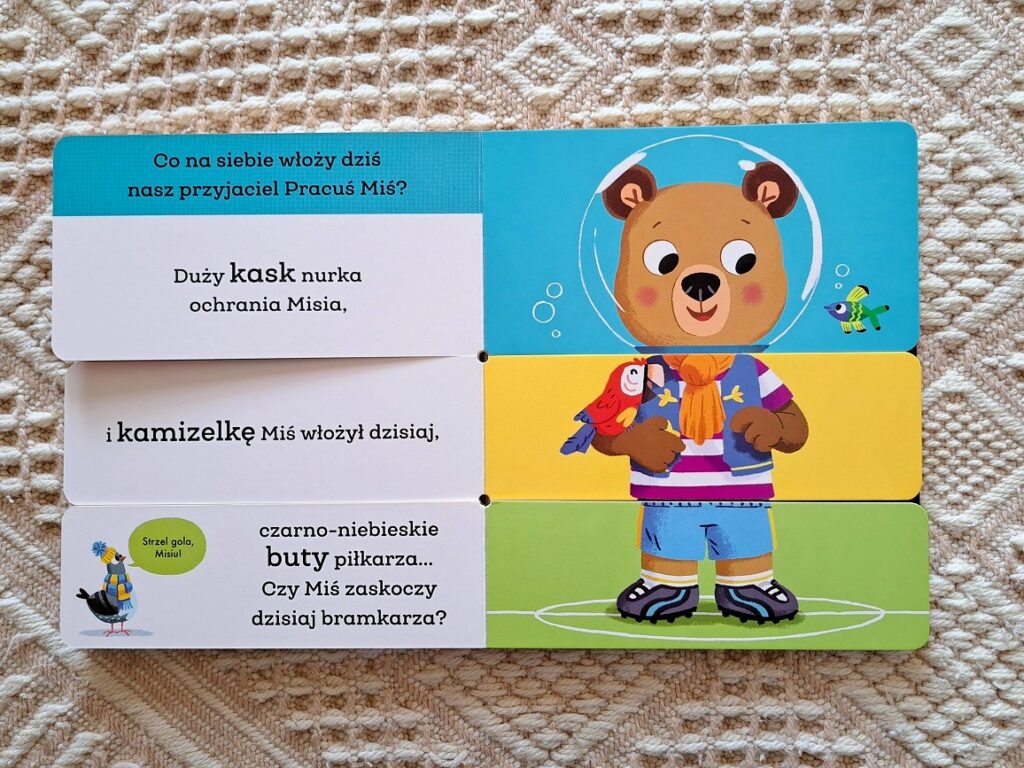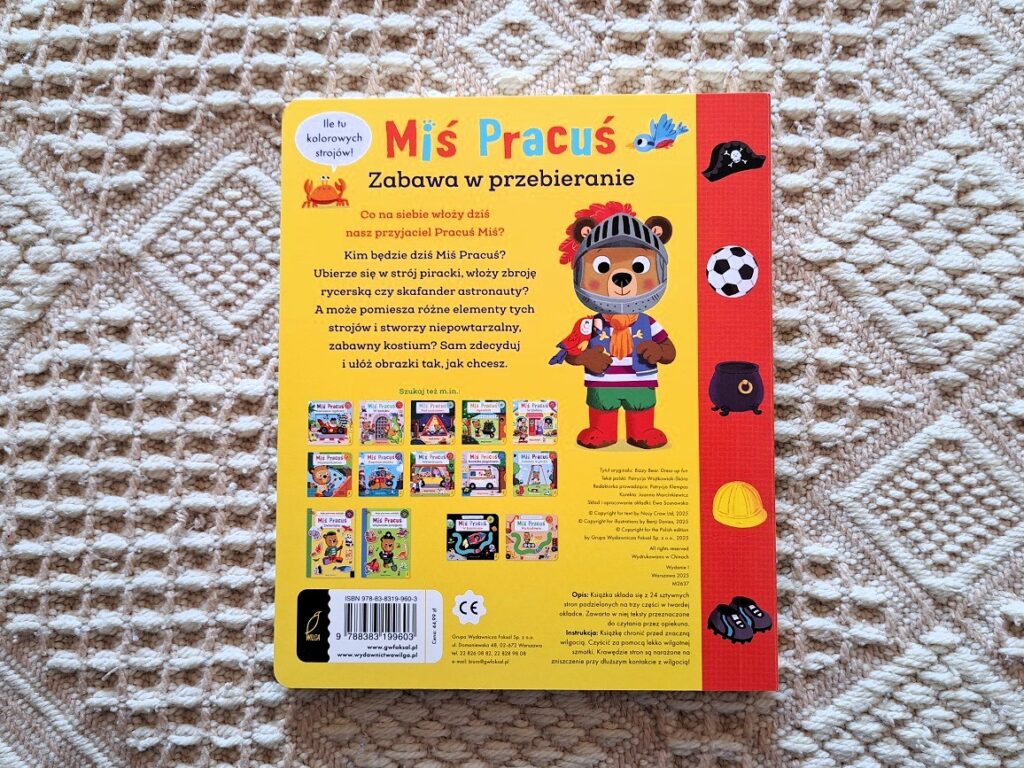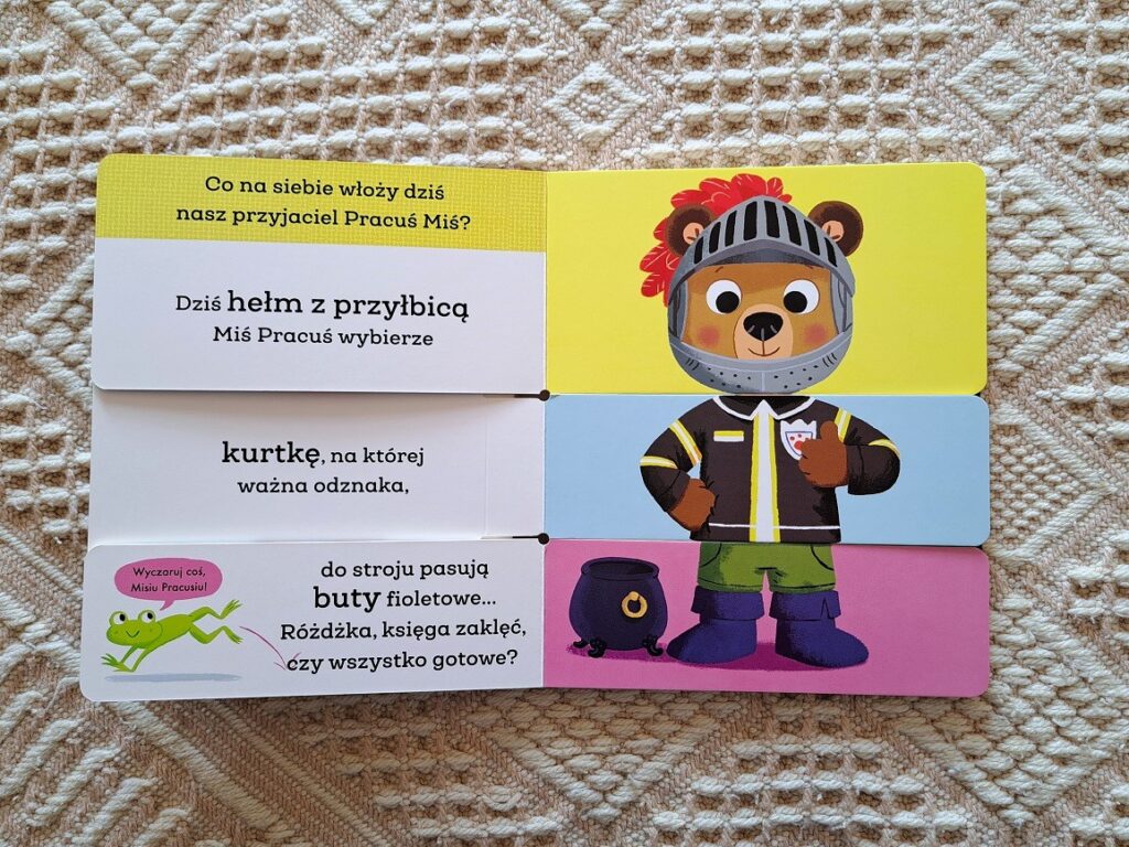 %a Poznawaj zawody z Misiem Pracusiem! Fantastyczna książka ze stronami podzielonymi na trzy części pozwoli najmłodszym eksperymentować i bawić się różnymi strojami. Jak ubiera się rycerz, a jak rolnik? Miś Pracuś ma w swojej szafie mnóstwo ubrań!