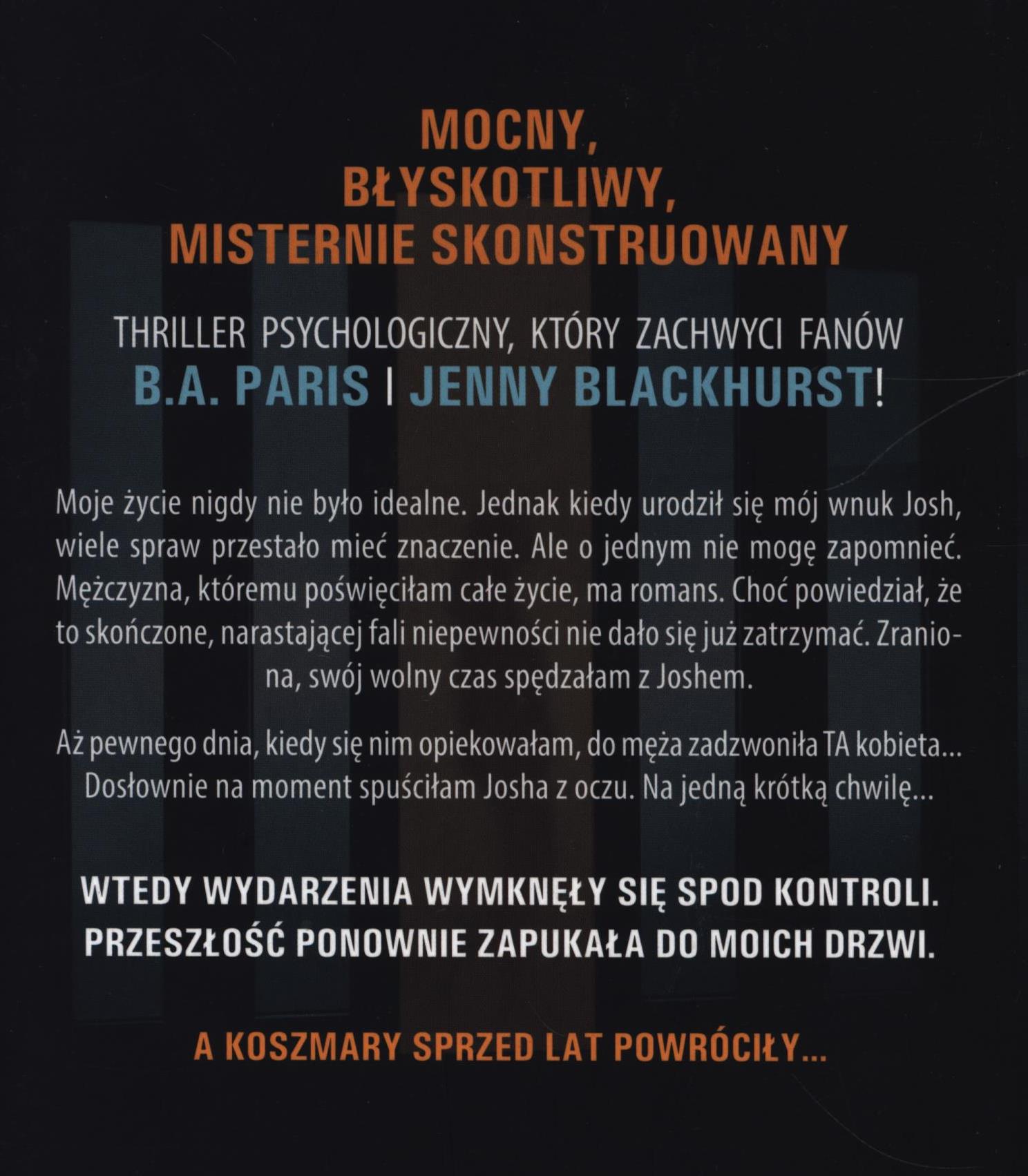 Dziadkowie i wnuki, Kobieta, Więźniowie, Zdrada małżeńska, Konflikt rodzinny, Wielka Brytania, Powieść, Thriller, Powieść psychologiczna