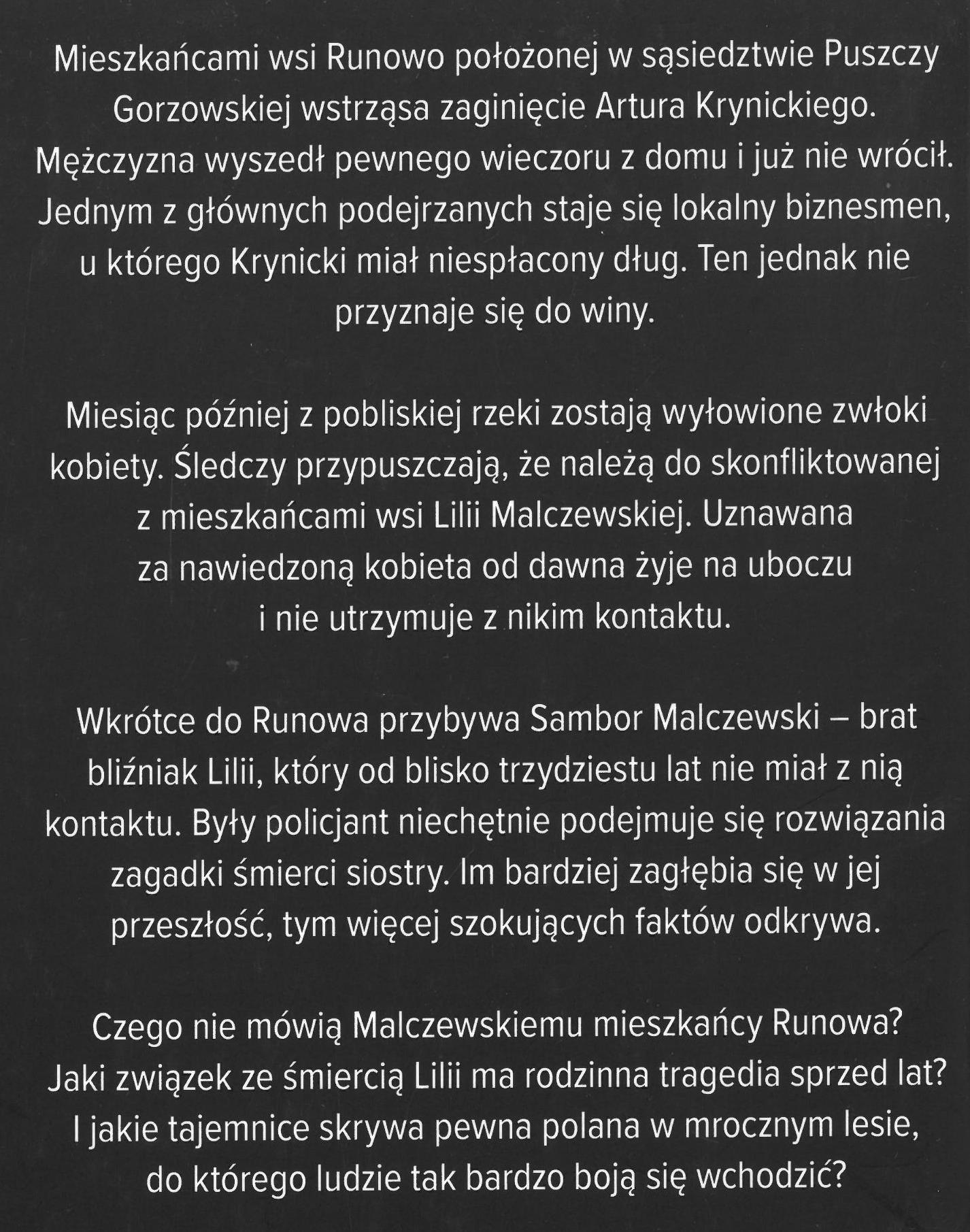 Bliźnięta, Las, Zmowa milczenia, Tajemnica, Wsie, Policjanci i policjantki, Społeczności lokalne, Osoby zaginione, Polska, Kryminał, Powieść, 1901-2000, 1989-2000, 2001-