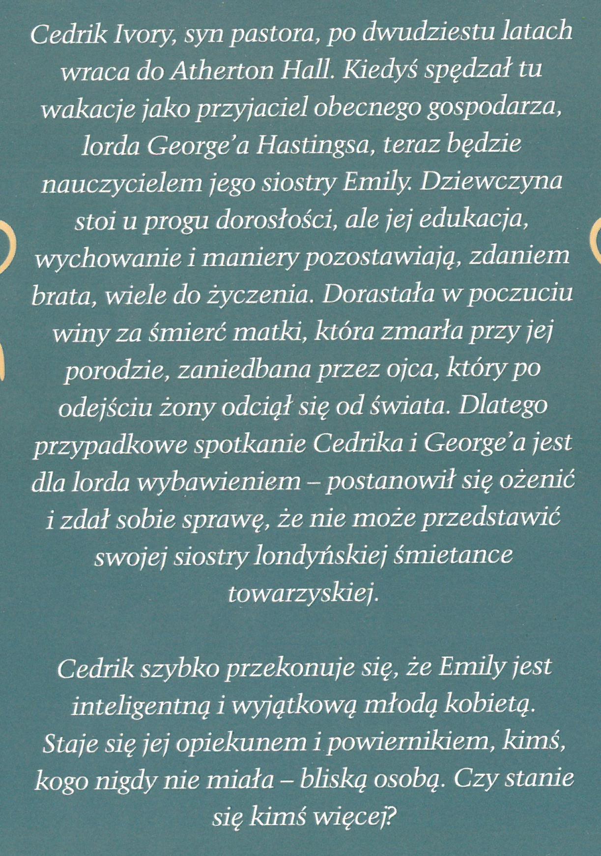 Arystokracja, Zaręczyny, Śmierć bliskiej osoby, Kształcenie, Nauczycielki i nauczyciele, Powroty, Rozstanie, Rodzeństwo, Anglia (Wielka Brytania), Londyn (Wielka Brytania), Publikacja z dużymi literami, Powieść obyczajowa