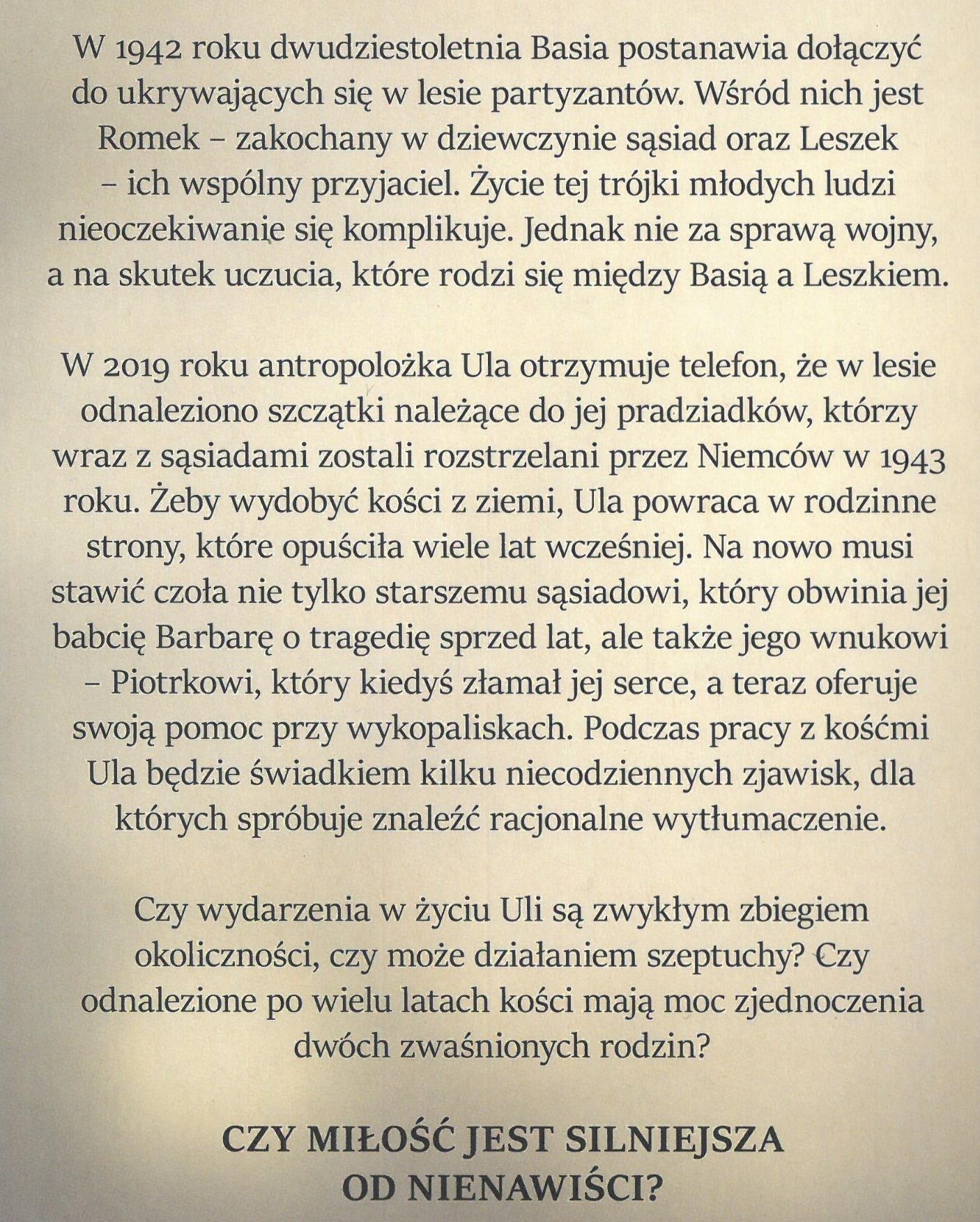 II wojna światowa (1939-1945), Archeologia, Partyzanci, Rodzina, Sekrety rodzinne, Trójkąt miłosny, Zawód miłosny, Białystok (woj. podlaskie), Kolno (woj. podlaskie), Powieść obyczajowa, Romans, 1901-2000, 1939-1945, 2001-