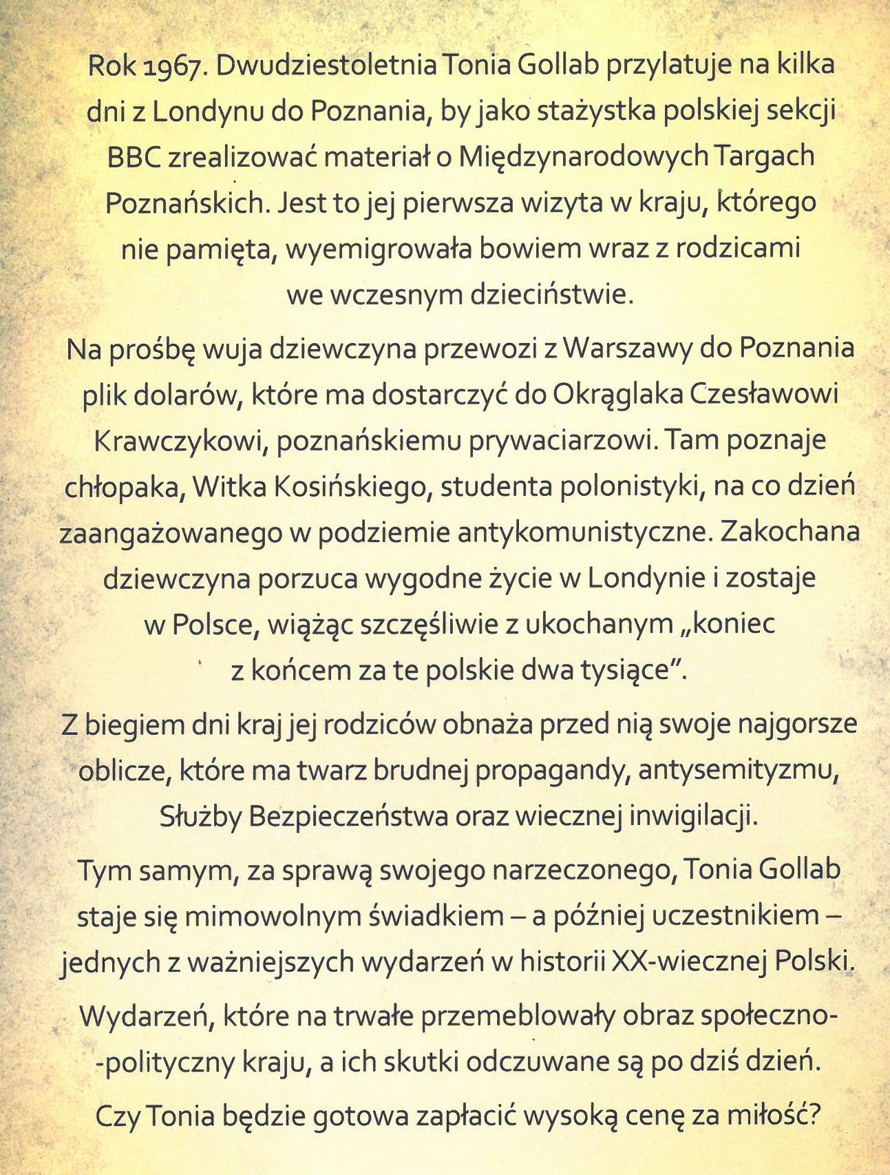 Ministerstwo Bezpieczeństwa Publicznego (Polska), Marzec 1968 (Polska), Kobieta, Emigranci, PRL, Służba bezpieczeństwa, Antykomunizm, Małżeństwo, Trudne sytuacje życiowe, Warszawa (woj. mazowieckie), Powieść obyczajowa, 1901-2000, 1945-1989