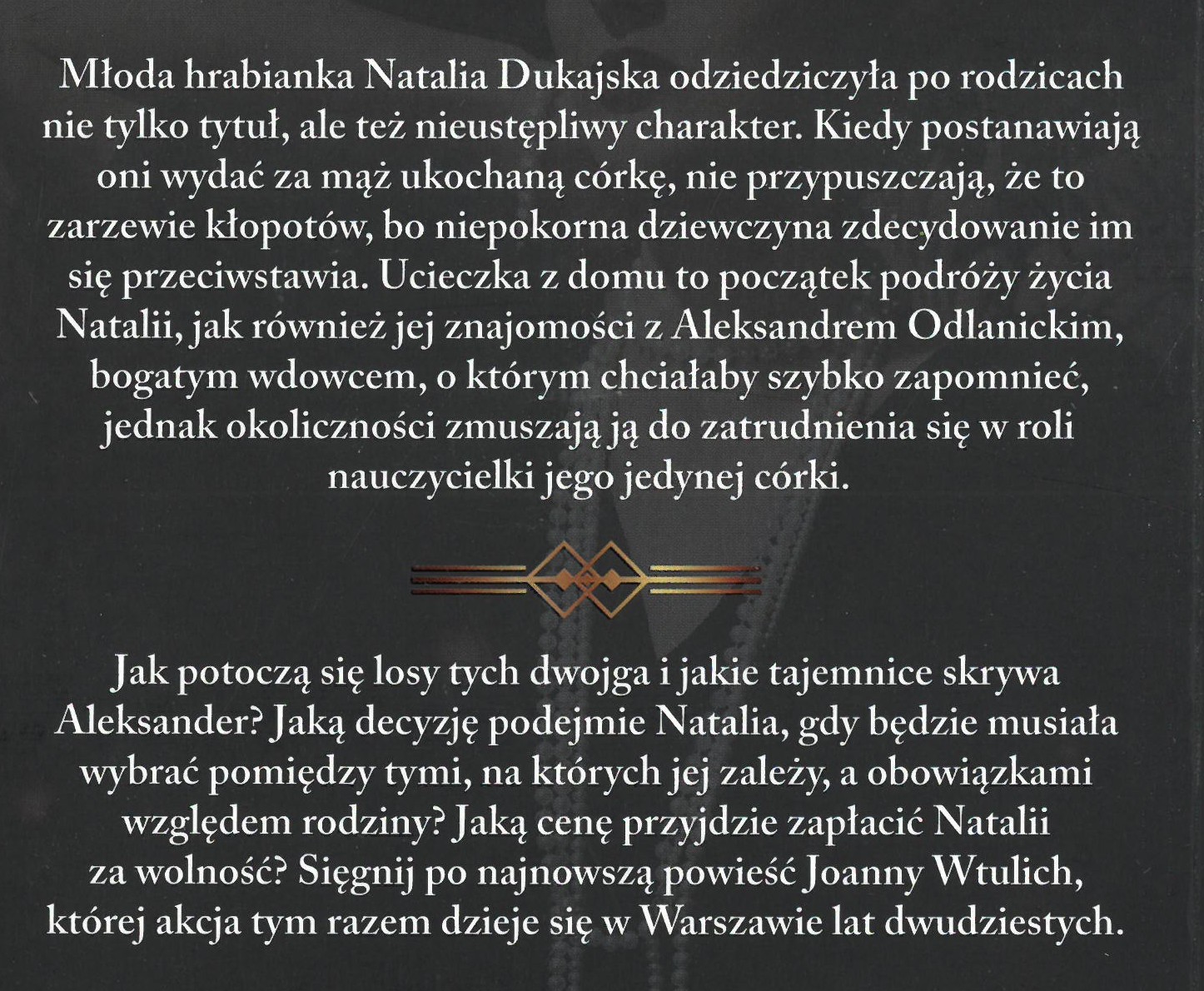 Arystokracja, Ucieczki dzieci z domów, Elita społeczna, Guwernantki i guwernerzy, Ludzie bogaci, Małżeństwo aranżowane, Samotni ojcowie, Warszawa (woj. mazowieckie), Powieść, Romans historyczny, 1901-2000, 1918-1939