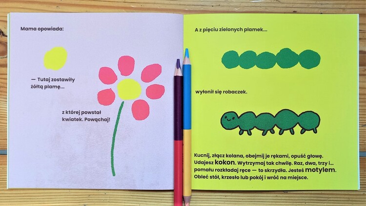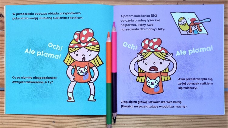 %a Drugi tomik nowej serii napisany przez doświadczoną logopedkę i animatorkę! Olo miał dzisiaj świetny dzień wypełniony tym, co najbardziej lubi - sportem. Dzień Awy nie układał się aż tak dobrze - plama na skarpetce, plama na bluzce, plama na rysunku... To wszystko sprawiło, że Awa poczuła się smutna i rozzłoszczona. Na szczęście mama zna świetną historyjkę o kolorowych plamkach. Okazuje się, że niektóre plamy mogą wywołać wesoły uśmiech. Często nie jesteśmy świadomi, że rozwój językowy i motoryczny dziecka idą w parze. Wykorzystując rączki podczas lektury, maluch aktywizuje elementy kory mózgowej odpowiedzialne za ruch, a tym samym pobudza ośrodek ruchowy mowy. Wspólne czytanie i zadania wspierające rozwój gwarantują, że czas spędzony z książką Moniki Skikiewicz zaprocentuje, a sympatyczne obrazki podbiją serca maluchów. *** https://www.ateneum.net.pl/pozycja.php?id=491410