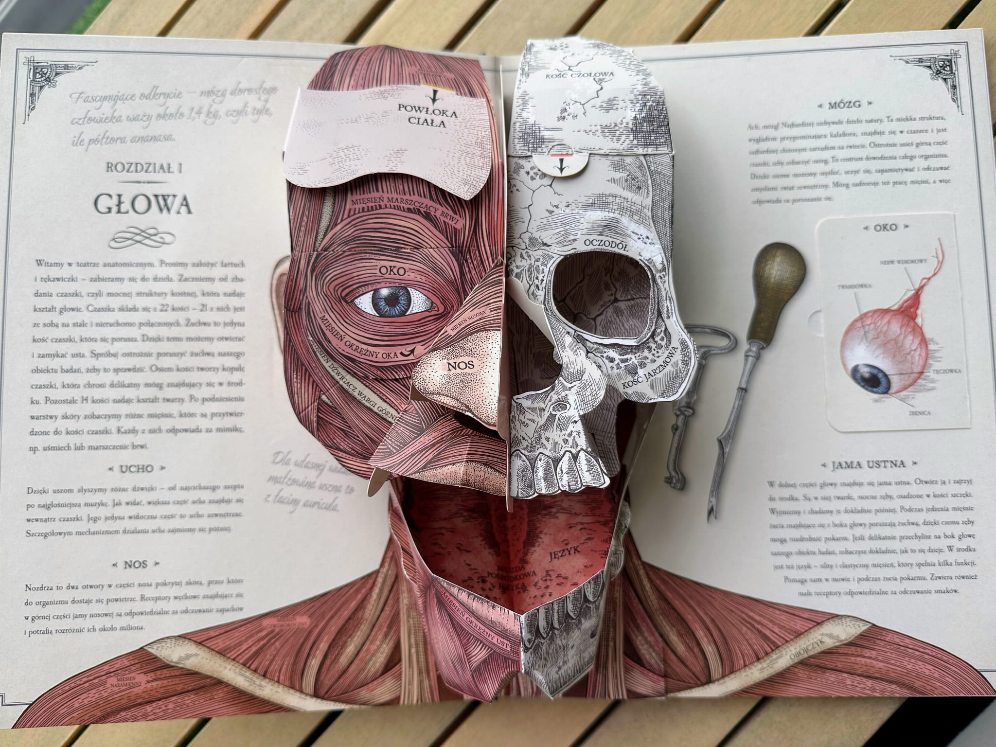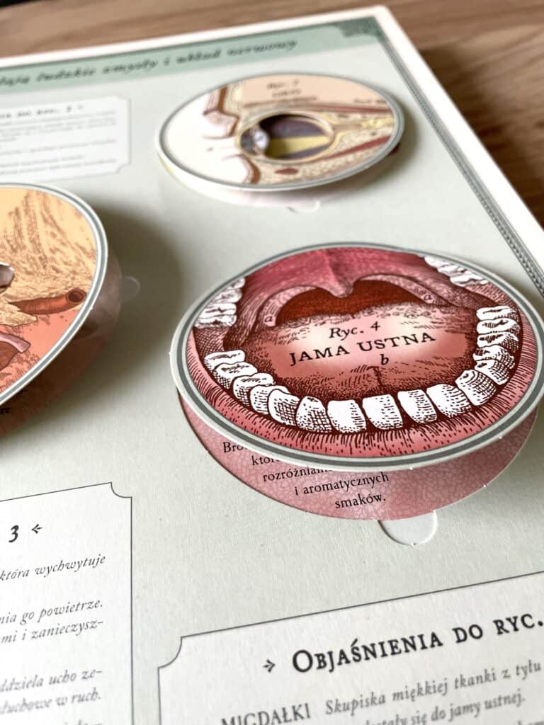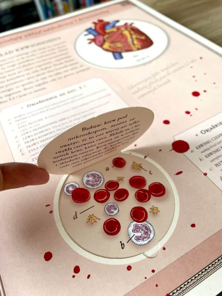 Otwórz klapki, obejrzyj trójwymiarowe modele, a dowiesz się wszystkiego o kościach, mięśniach, mózgu, oczach, płucach i sercu. Ilustracje inspirowane stylem wiktoriańskim oraz notatki i szkice dadzą Ci pełny obraz tego, jak działa ludzkie ciało.
